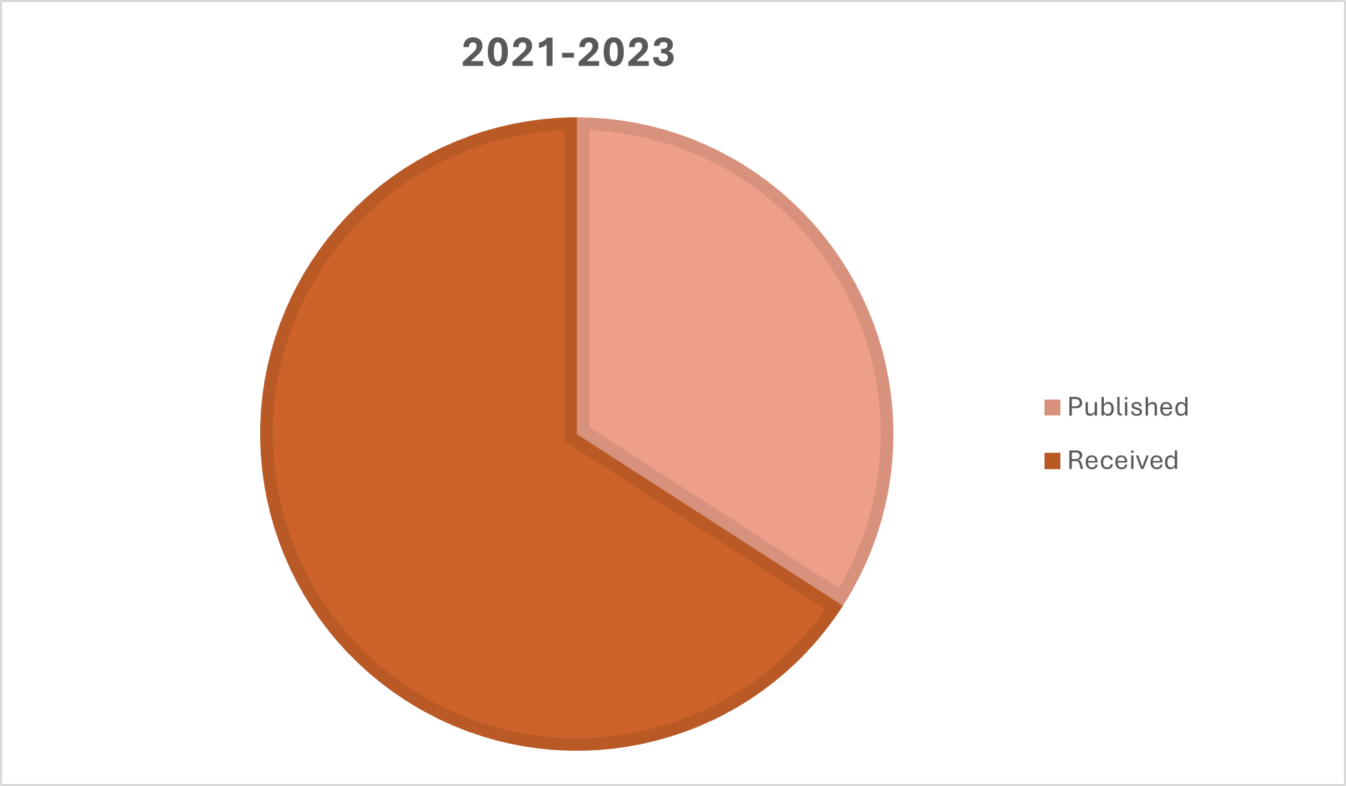 Porcentaje de artículos rechazados durante el trienio 2021-2023: 34.12%