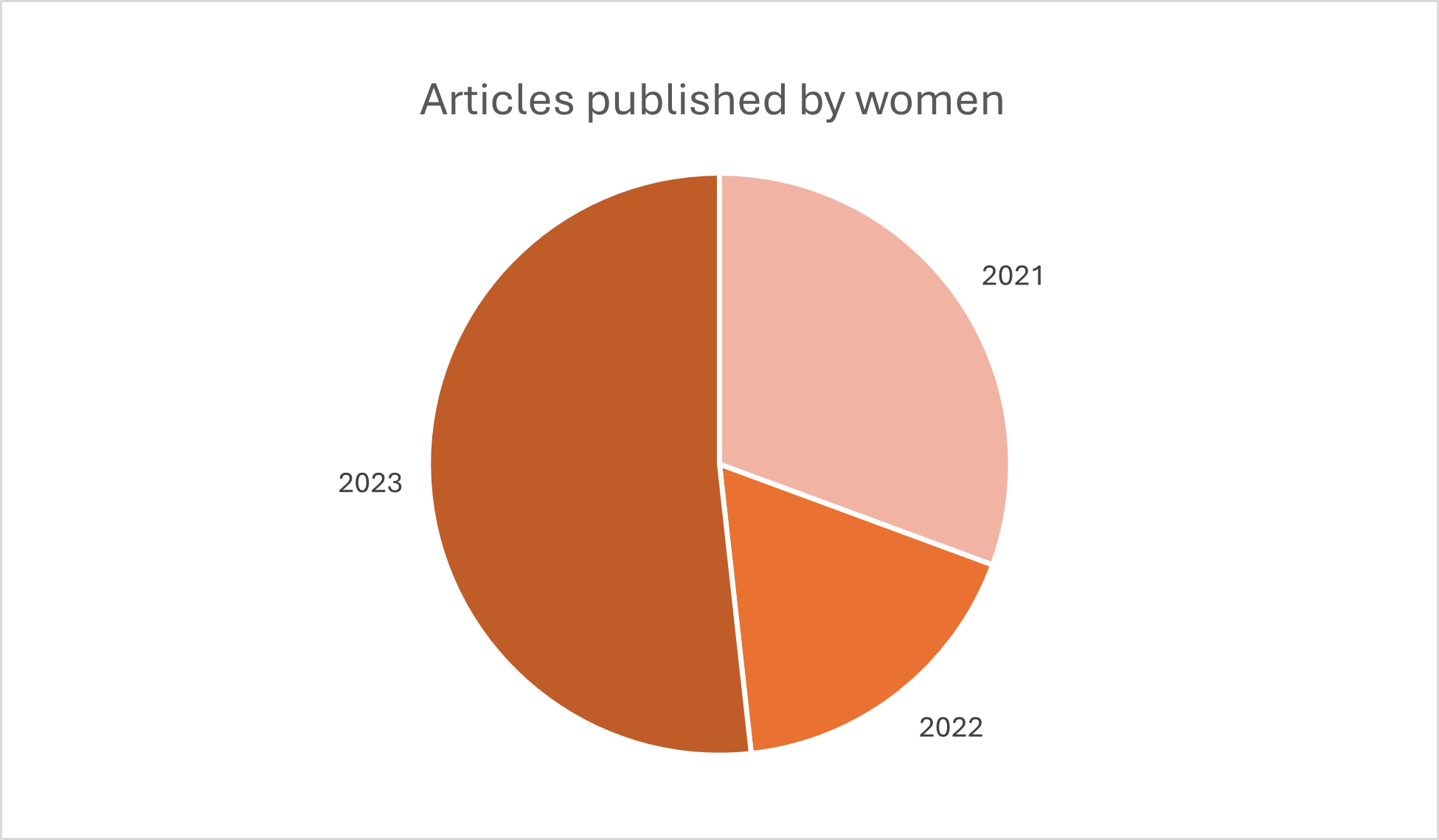 Porcentaje de artículos publicados por mujeres en 2023: 53.33%