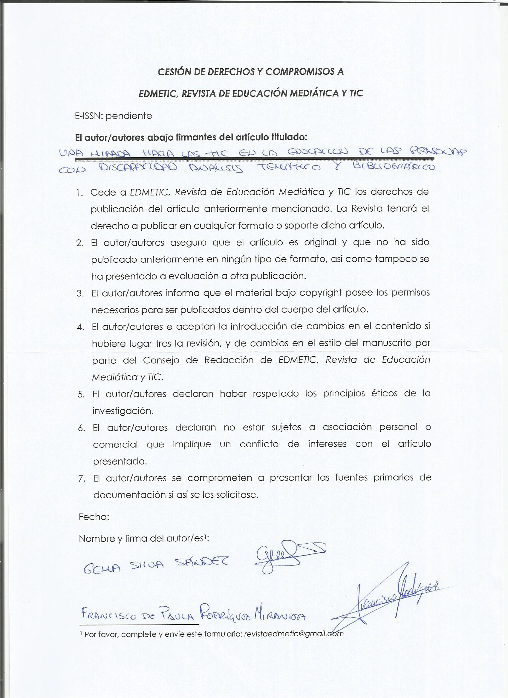 FERNÁNDEZ, J.M., y VELASCO, N. (2003). Educación inclusiva y nuevas tecnologías: una convivencia futura y un diálogo permanente. Pixel-Bit. Revista de Medios y Educación, 21, 55-63.